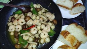 アヒージョに挑戦。もちろん素を使っていますが、美味しかったです。
