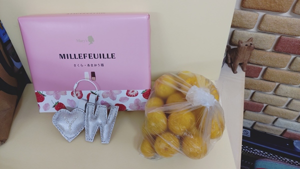 今日もたくさんの差し入れありがとうございます。 本日もいらっしゃるお客様に次々と差し入れいただきました。 いつも気に掛けていただき本当にありがとうございます。 ご近所のパン屋さんで買ってさしいれてくれました。ラム酒を混ぜたバタークリームが効いてます。 庭でとれた「ゆず」とご主人の手作りワッペン、ホワイトデーのチョコとたくさんありがとうございます。 リンドールとリーガロイヤルホテルのチョコレート。美味しくいただきました。ありがとうございます。