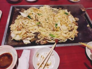 佐用町のホルモン焼うどん 帰省のついでに、長らく行けてなかった佐用町でホルモン焼うどんを食べてきました。 今回は「ふじ」さんという初来店のお店です。 いつも行ってた所より美味しいと連れてきてもらいました。 4人で7玉のうどんとホルモン・豚バラ・ミノ・レバーなどをトッピングしています。なかなかのボリュームです。 テレビの番組でかなり取り上げられているようです。有名店なんですね。 あっという間に全部たいらげました。久々にホルモンうどん堪能できました。 また伺いたいと思います。